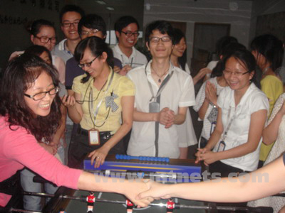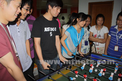 7月初,在南非世界杯如火如荼進行著的時候,明通公司桌上足球比賽也開打了。桌上足球是個新鮮的玩意,絕大部分人都沒玩過,雖然如此,但依然有64位同事激情的參與,公司總經理、市場總監等足球愛好者也紛紛參與其中。